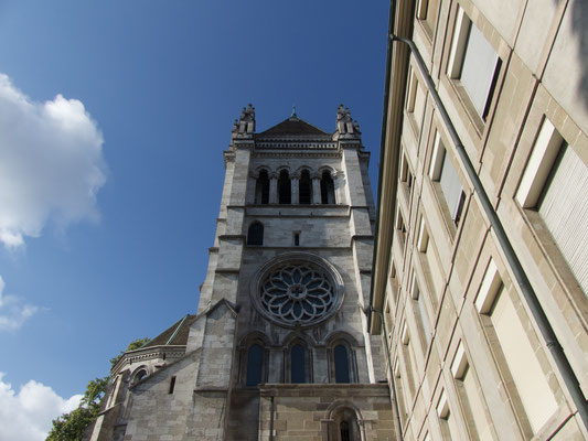Nicht gefehlt hat natürlich der Spaziergang der Uferpromenade entlang bis zum Jardin Anglais mit Blick auf den Jet d’Eau. Auch gesehen haben wir den Jardin Anglais mit der Blumenuhr. Wir sind durch die Altstadt geschlendert, auf den Turm der St.Pierre Kathedrale gestiegen, haben Halt im Hotel de Ville gemacht, den Parc de Bastion und die Reformationsmauer besucht, ebenfalls den Pointe de Jonction und den Palast der Nationen mit dem Denkmal des gebrochenen Stuhls.