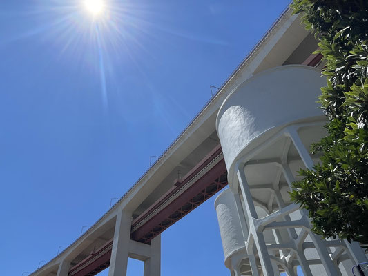 Dann gibt es da noch das Kloster Mosteiro Jerónimos Belém etwas ausserhalb. Es ist sicher ein Besuch wert, doch ich persönlich zähle es nicht zu den Highlights, auch wenn das Lichtspiel am Wasser ganz traumhaft ist. Was ich jedoch empfehlen kann, ist das Aqueduto das Águas Livres. Es ist ein riesiges Aquädukt im Osten von Lissabon. Es erstreckt sich auf einer sagenhaften Länge von 19 Kilometern und ist bis zu 65 Meter hoch. Von vielen Besuchern wird das Aquädukt erstaunlicherweise nicht besucht, dabei ist es wirklich eindrucksvoll und deshalb einer unserer liebsten Aussichtspunkte in Lissabon. Umso besser, denn so sind unsere Fotos menschenleer. Du kannst das Aquädukt begehen und hast von oben eine tolle Aussicht über den Norden Lissabons.