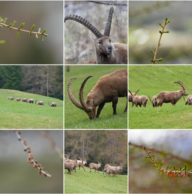 Hier sind sie wieder! Mit zotteligem Fell, wachsamen Augen, auf der Suche nach ersten Gräsern, die hervorspriessen. Oberhalb von Pontresina lebt eine der grössten Steinbock-Kolonien der Alpen. Im Frühling, wenn die Gipfel noch weiss, im Tal die Wiesen aber schon schneefrei sind, kommen die Tiere bis an den Rand des Bergdorfs. Als würden sie spüren, dass sich die Menschenmassen aus dem Engadin verabschiedet haben und nach der erfolgreichen Wintersaison etwas Ruhe einkehrt. Wir geniessen den Anblick dieser eindrücklichen Tiere, obwohl es regnet. Ich kann mich kaum losreissen, meine Hände schmerzen mittlerweile vor Kälte und Nässe... Diese Hörner, diese Kraft, diese Gelassenheit und Aufmerksamkeit – der Anblick ist einfach fesselnd!