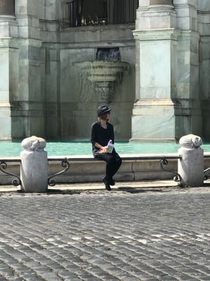 Weiter gehts durch die Gassen zur Spanischen Treppe. Sie ist Flaniermeile, Flirtplatz und Fotomotiv. Zudem Tummelplatz von Künstlern und Touristen. Auch hier hat es also sehr viele Menschen. Wir suchen uns ein ruhigeres Plätzchen. Wir wollen per Fahrrad den Park Villa Borghese erkunden. Doch es gibt Widerstand in den eigenen Reihen! Pahhhh, so schnell geben wir nicht auf. Ich möchte nämlich so viel wie möglich vom Park sehen und das geht eben nur, wenn wir Räder unter den Füssen haben. Wir einigen uns also auf so zwei Vierrad-Fortbewegungsmittel und lachen uns unterwegs halb kaputt. Fahren Hügel rauf und Hügel runter, liefern uns Rennen, bleiben in unwegsamen Gelände stecken und versuchen dabei möglichst entspannt auszusehen. Es ist eine wirklich lustige aber auch peinliche Aktion. Ein feines Abendessen im Grazia e Graziella und der erste Tag ist bereits Geschichte.