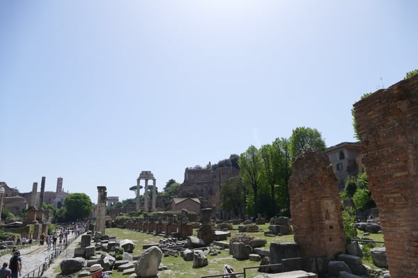 Wir deponieren an unserem letzten Tag das Gepäck im Hotel. Wir haben ein Sammelticket inklusive Führung für das Kolsosseum und das Forum Romanum gelöst. Zum Glück sind wir so früh dran. Wir kommen relativ schnell in das Innere des Kolosseums und starten mit unserer Tour. Blutrünstige Kämpfe zwischen Gladiatoren, Verbrecher wurden hingerichtet oder wilde Tiere gejagt. Gladiatoren waren Kriegsgefangene, Sklaven oder Menschen, die dermassen verschuldet waren, dass sie ihr Leben riskierten um an Geld zu kommen. Unter der Arena befanden sich die schattigen, drückend heissen Zellen, in denen die Gladiatoren oder Tiere auf ihren Auftritt warteten. Sie wurden jeweils von Seilen durch die Falltüren nach oben gezogen. Schon sehr eindrücklich. Nach all diesen Eindrücken begeben wir uns noch zum Palatinhügel. Es heisst, das Rom auf dem Palatin oberhalb des Forum Romanum gegründet wurde. Später leben die römischen Kaiser hier in luxeriösen Palästen. Mittagessen.