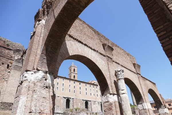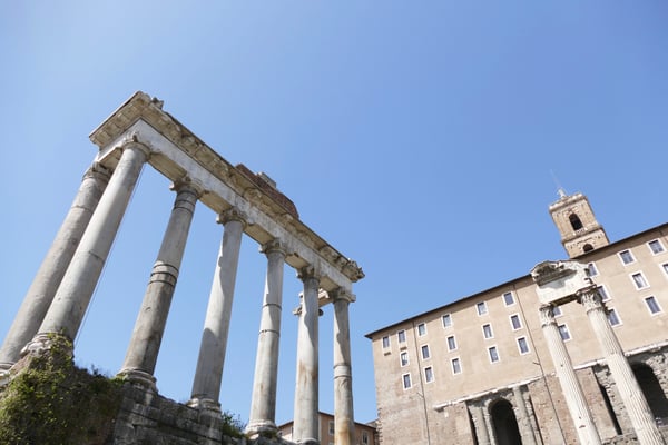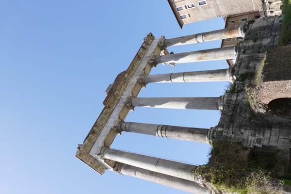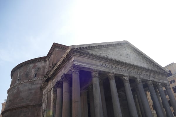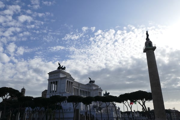 Foro Traiano. Diese alten Ruinen waren einst das grösste der kaiserlichen Foren. Diese Säule ist mit 2000 Jahre alten Zeichnungen bedeckt. Sie wurden zu Ehren der Siege von Kaiser Trajan in Stein gehauen. Zum Abschluss noch ein Blick auf das Pantheon. Eines der ältesten Gebäude Roms. Es hat eine Öffnung in der Decke – ein sogenanntes Kuppelauge. Danach holen wir das Gepäck im Hotel und machen uns auf den Weg zum Flughafen.