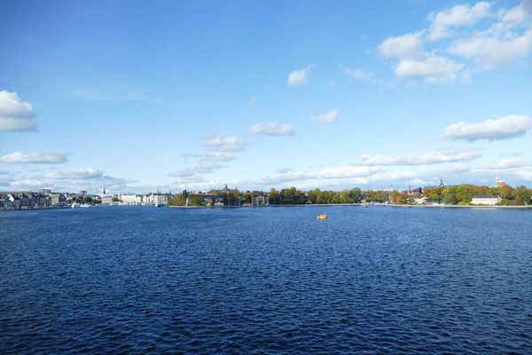 Skeppsholmen dann ist ein ehemaliger Marinestützpunkt, heute Anlaufsstelle für Kulturbegeisterte: Die kleine Felsinsel Skeppsholmen liegt abgeschieden und doch mitten in der Stadt – hier geniesst man nicht nur einen der besten Blicke aufs Schloss, hier erhält man auch interessante Einsichten in die Kunst der Moderne oder kann einfach am Wasser entlang spazieren. Am schönsten ist die Anreise über Wasser. Die Djurgardenfähre tuckert das ganze Jahr über. Die Fähre pendelt von Slussen nach Djurgarden mit Zwischenstopp in Skeppsholmen. Gegen Abend fliegen wir mit vielen Eindrücken von Stockholm nach Hause. Es ist wiederum ganz bezaubernd über den Wolken.