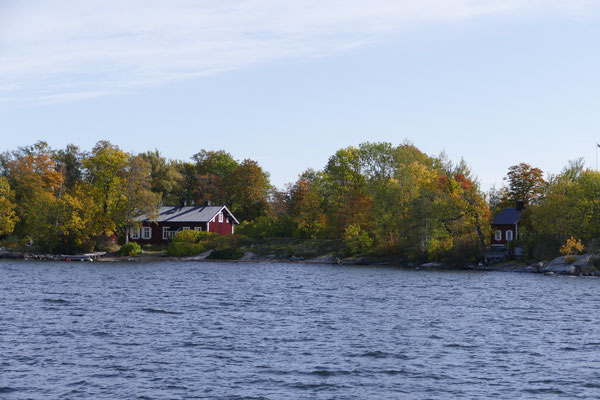 Es ist Sonntag und wir machen einen Kurztrip in die Schären. Eine Schärenidylle mit allem, was dazugehört, vom Bootschuppen über die Restaurantterrasse am Steg bis zur Fischräucherei, von der felsigen Badebucht bis zum Sandstrand... Wenn es die letzten Tage schon kalt war, dann ist es nun mit dem Fahrtwind sehr sehr SEHR kalt. Ich beisse auf die Zähne und versuche die schöne Landschaft zu geniessen, stelle mir vor, wie die idyllischen Plätzchen im Sommer belegt sind. Denn jetzt zeichnet sich alles durch eine absolute Ruhe und Weite aus.
