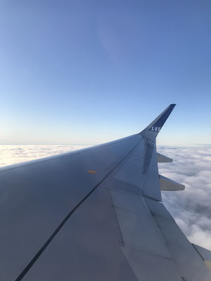 Frühmorgendlicher wunderbarer Anflug über den Wolken. Transfer vom Flughafen in die Stadt mit dem Alranda-Express. Es dauert etwa 40 Minuten. Wir deponieren unser Gepäck im Hotel «Downtown Camper by Scandic» und ziehen los in die Stadt. Brrrrrrr. Es ist eiskalt.