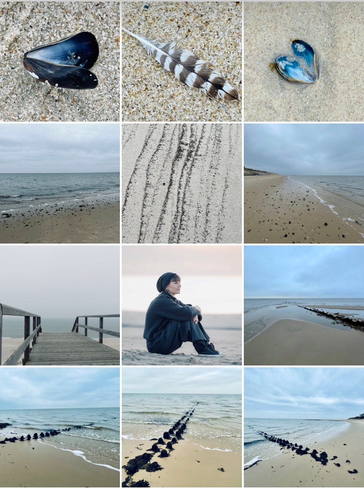 Und weil der Blick auf das Meer die Kulisse meines Kummers wurde, begann diese Aussicht mir noch mehr zu gefallen. Hier führte ich meine Melancholie und Erschöpfung spazieren und gerade deshalb erschien mir dieser Strand so ungeheuer lebendig. Meine Suche öffnete mir die Augen, lenkte meine Aufmerksamkeit auf die kleinsten Details: die Schönheit der angespülten Hölzer, das goldene Licht auf den Sandhügeln, die krabbelnden Tiere oder zwischendurch auf einen weiteren Strandbesucher, versteckt unter der Kapuze einer farbigen Windjacke, die sich im Wind aufblähte. Ich watete im Treibsand der Sehnsucht, liess den wieder aufgebrochenen Schmerz zu und der Strand nahm daran Anteil und beschütze mich.