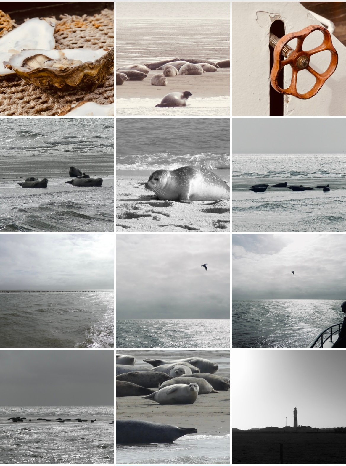 Ja, sich einfach mal den Wind um die Nase wehen lassen, die frische Brise tief einatmen und in die – jedenfalls in Gedanken – Nordsee eintauchen. Die berauschenden Ausblicke rauben einem die Sprache. Doch wer hat das Meer geklaut? Hosenbeine hochkrempeln, raus aus den Socken oder halt, doch besser bei diesen Temperaturen mit den Gummistiefeln – schmatz – da stecke ich schon drin im matschigen Watt. Später doch noch barfuss. Herrlich. Es ist unvorstellbar wie dicht dieser Lebensraum unter meinen Füssen besiedelt ist! Die Gezeiten prägen das Watt, fluten es alle sechs Stunden und legen es wieder trocken, nur ein bisschen Wasser glitzert noch auf dem Netz von Prielen durchzogenen Schlick und die Robben ruhen sich dann auf den Sandbänken aus.